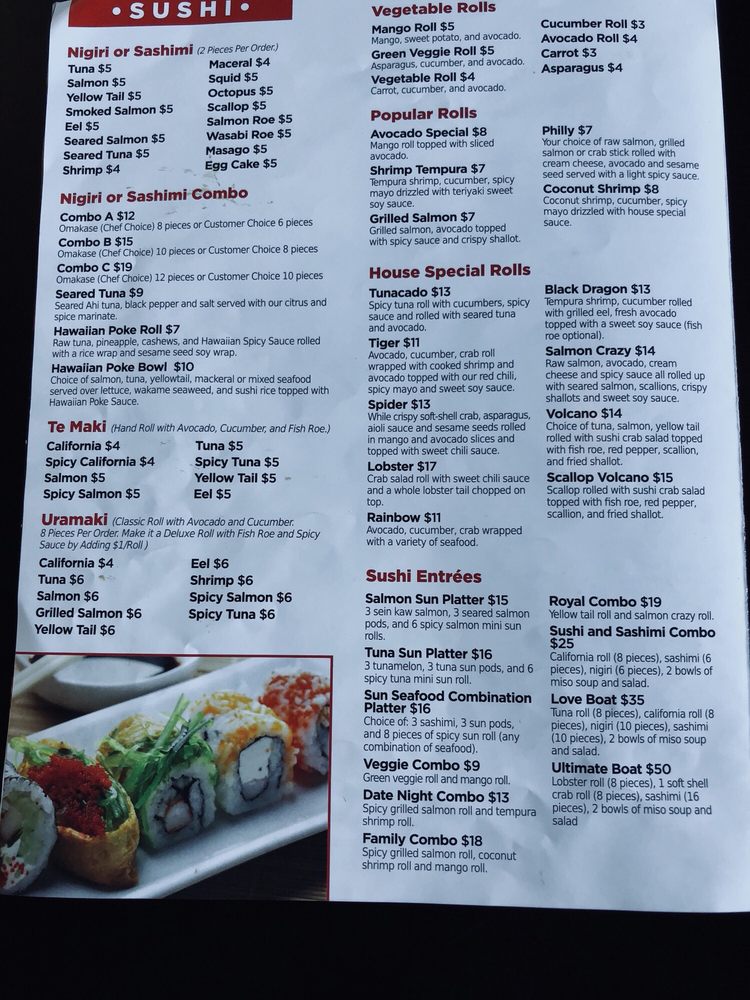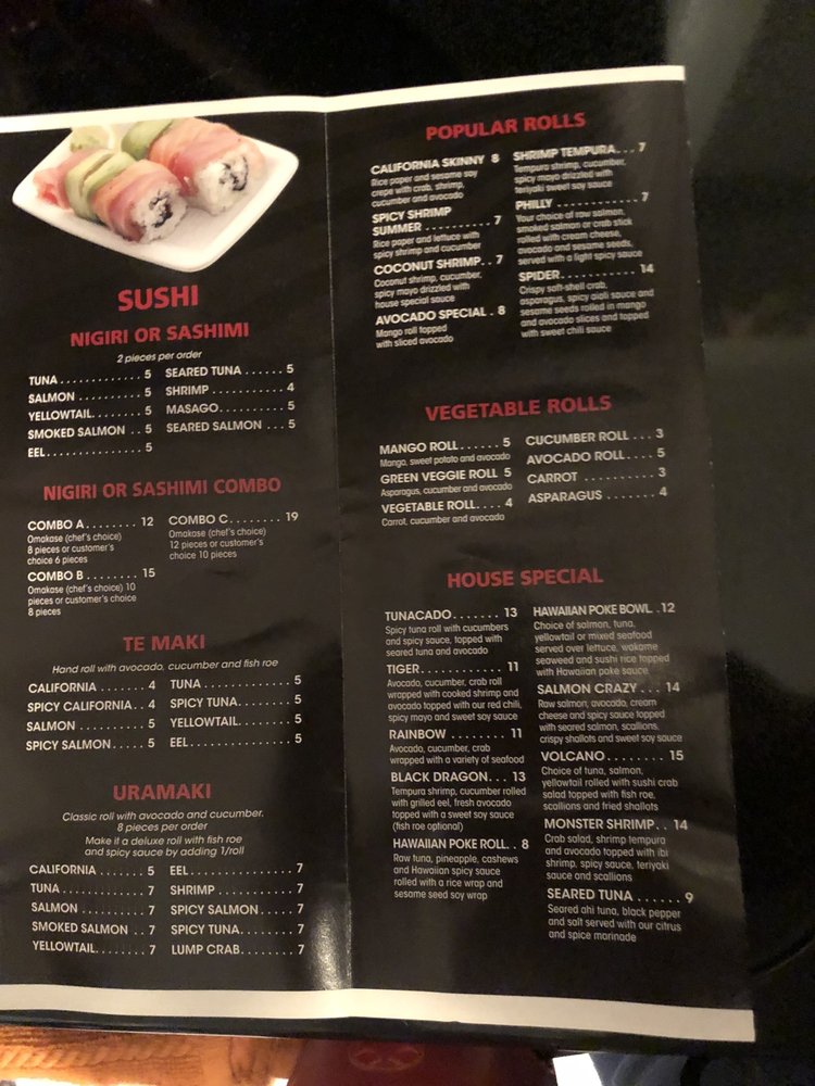 Shrimp tempura, tuna kani crab and avocado rolled in sesame soy paper. Topped with spicy tuna, jalapeo, tempura crunch, masago, spicy mayo and eel sauce.