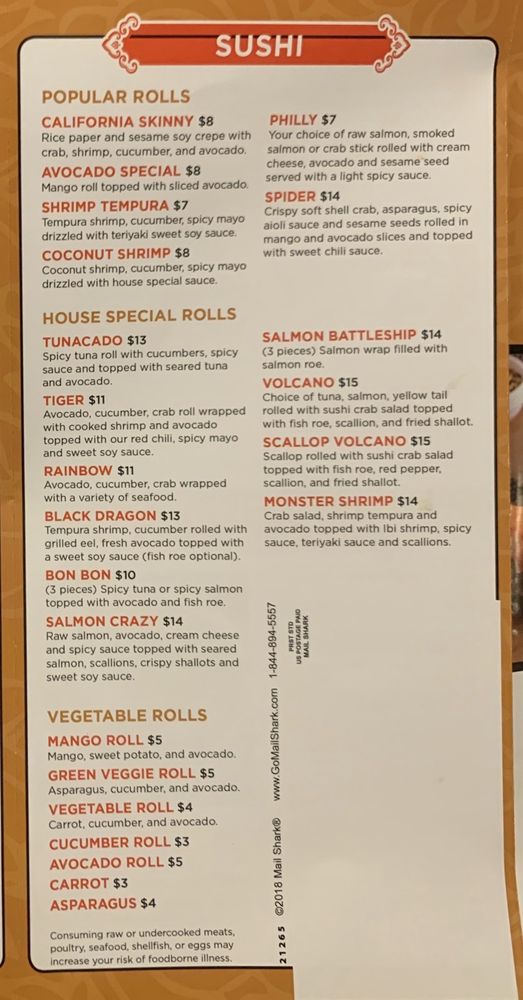 Coconut shrimp, cucumber, spicy mayo drizzled with teriyaki sweet soy sauce.