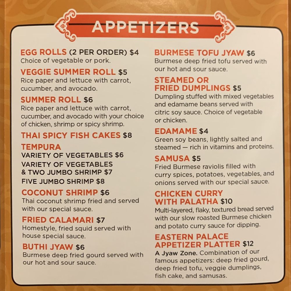 Eastern Palace Menu